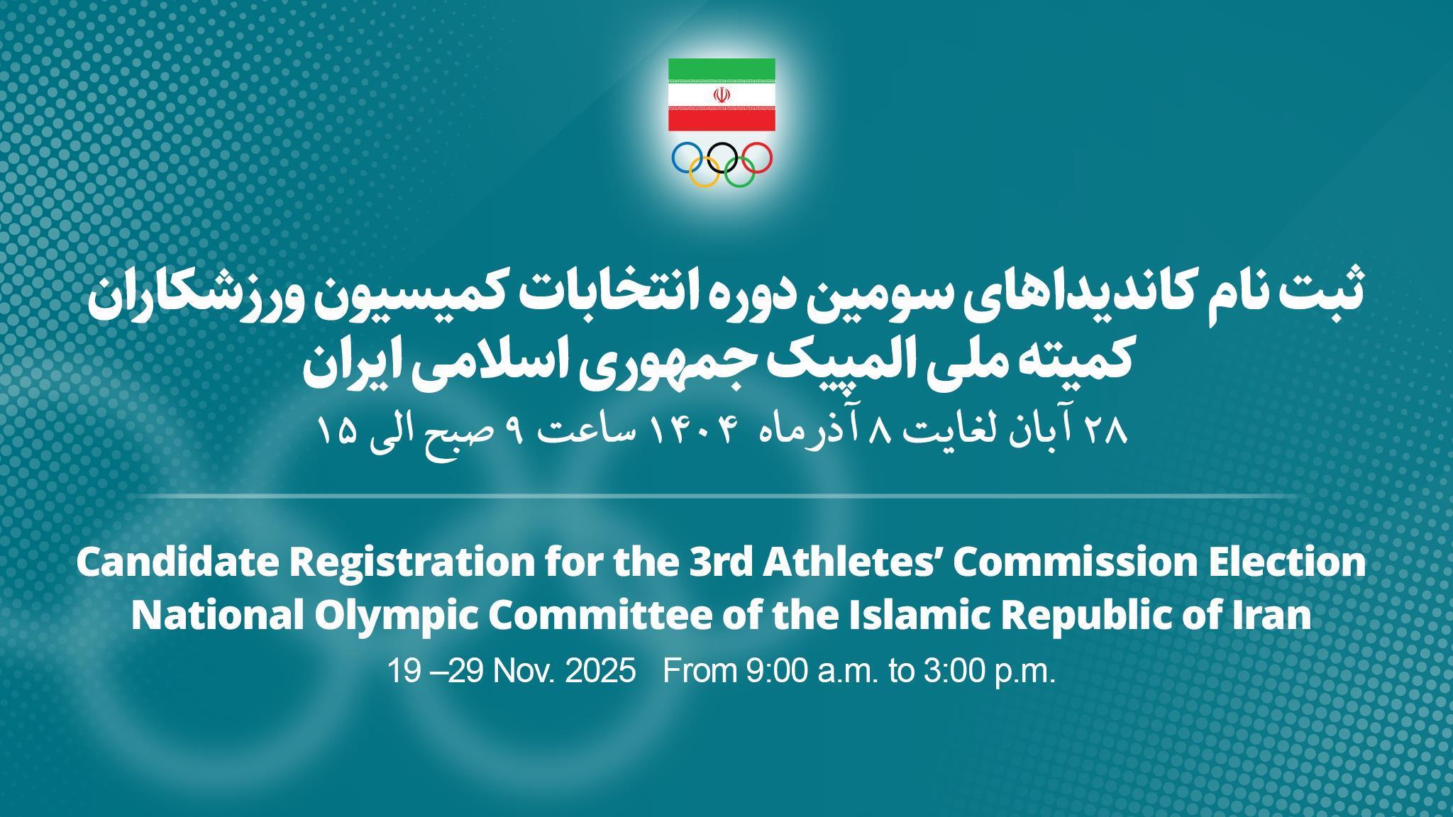 Registration for candidates of the third election of the Athletes’ Commission of the National Olympic Committee of Iran will officially begin on Wednesday, 19 of November, at the Shahid Tehranchi Hall of the National Olympic Academy.
