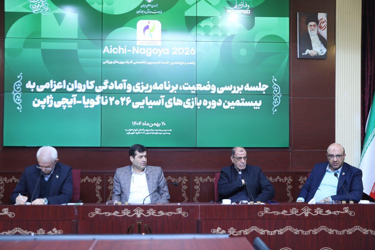 A specialized meeting was held to review the latest status of Iran’s delegations to the 2026 Asian Games in Nagoya and the Asian Beach Games in Sanya, with the participation of senior officials from the Ministry of Sport and Youth and the National Olympic Committee.