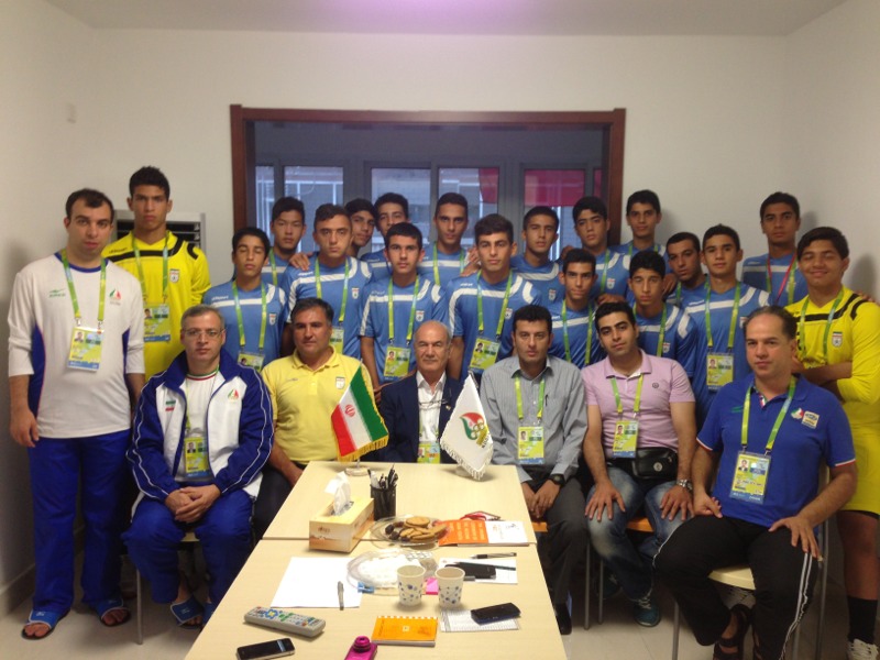 بهرام افشارزاده دبیر کل کمیته ملی المپیک کشورمان پیش از دیدار تیم ملی فوتبال نوجوانان کشورمان با ویتنام با اعضای تیم دیدار و گفتگو کرد.