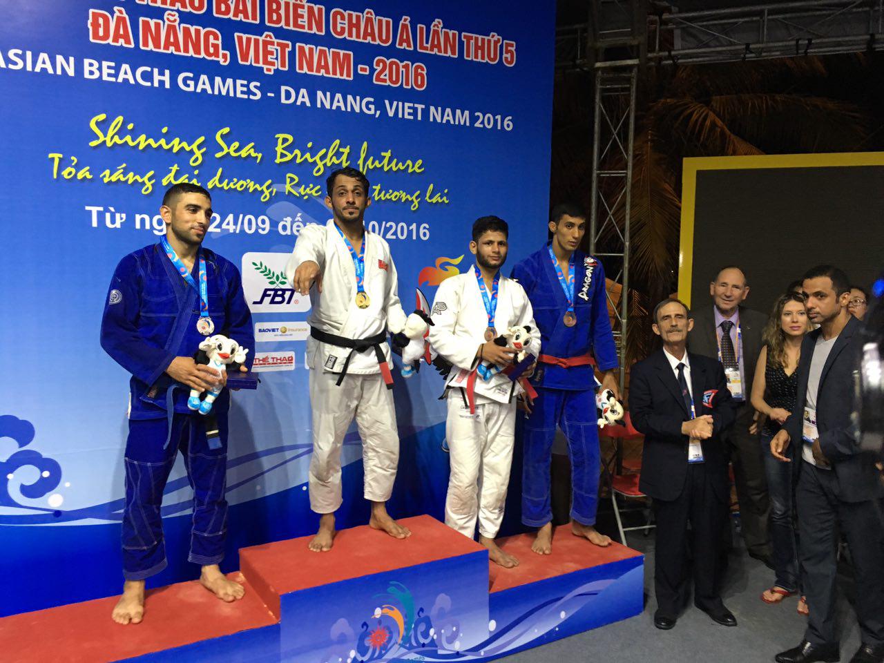 گفتنی است:در نخستین روز از پنجمین دوره بازیهای آسیایی ساحلی محمد حسین شیخ الاسلامی در کوراش با طلای خود نخستین مدال کاوران ورزشی کشورمان را به ارمغان آورده بود و با برنز خادمیان در جوجیتسو تعداد مدالهای ایران به عدد 2 رسید.