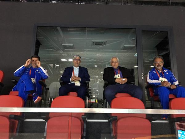 به گزارش روابط عمومی کمیته ملی المپیک؛همچنین دکتر نوروزی رئیس فدراسیون پزشکی ورزشی و مجید شایسته رئیس فدراسیون تنیس،صادق فرجی رییس فدراسیون کاراته نیز با حضور در سالن کریستال هال باکو به تماشای مسابقه ایران و عربستان نشستند.