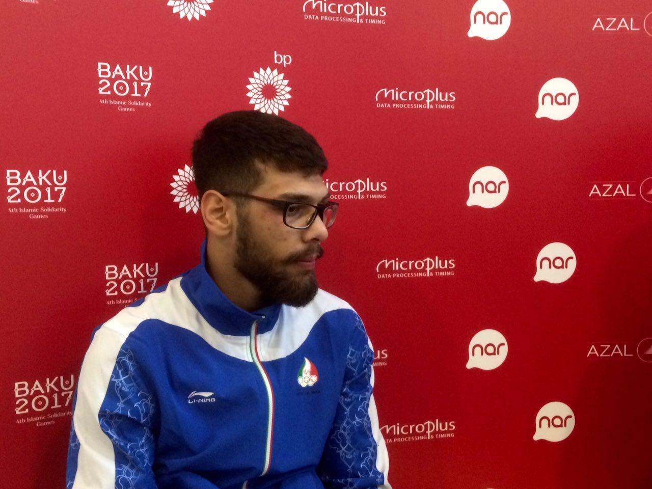 وی درباره بازیهای کشورهای اسلامی گفت: آذربایجانیها مسابقات را خیلی جدی گرفتهاند و سعی میکنند آن را به بهترین شکل برگزار گنند. من قبلا دو بار در سالن حیدرعلییف مبارزه کردهام اما برای این مسابقات واقعا تغییر کرده است. جو عجیبی دارد و با حضور جودوکاران درجه اول آسیای میانه سعی کردهاند سطح مسابقات را بالا ببرند. رقبا نیز بهترین نفرات خود را آوردهاند چون مدال میخواهند.