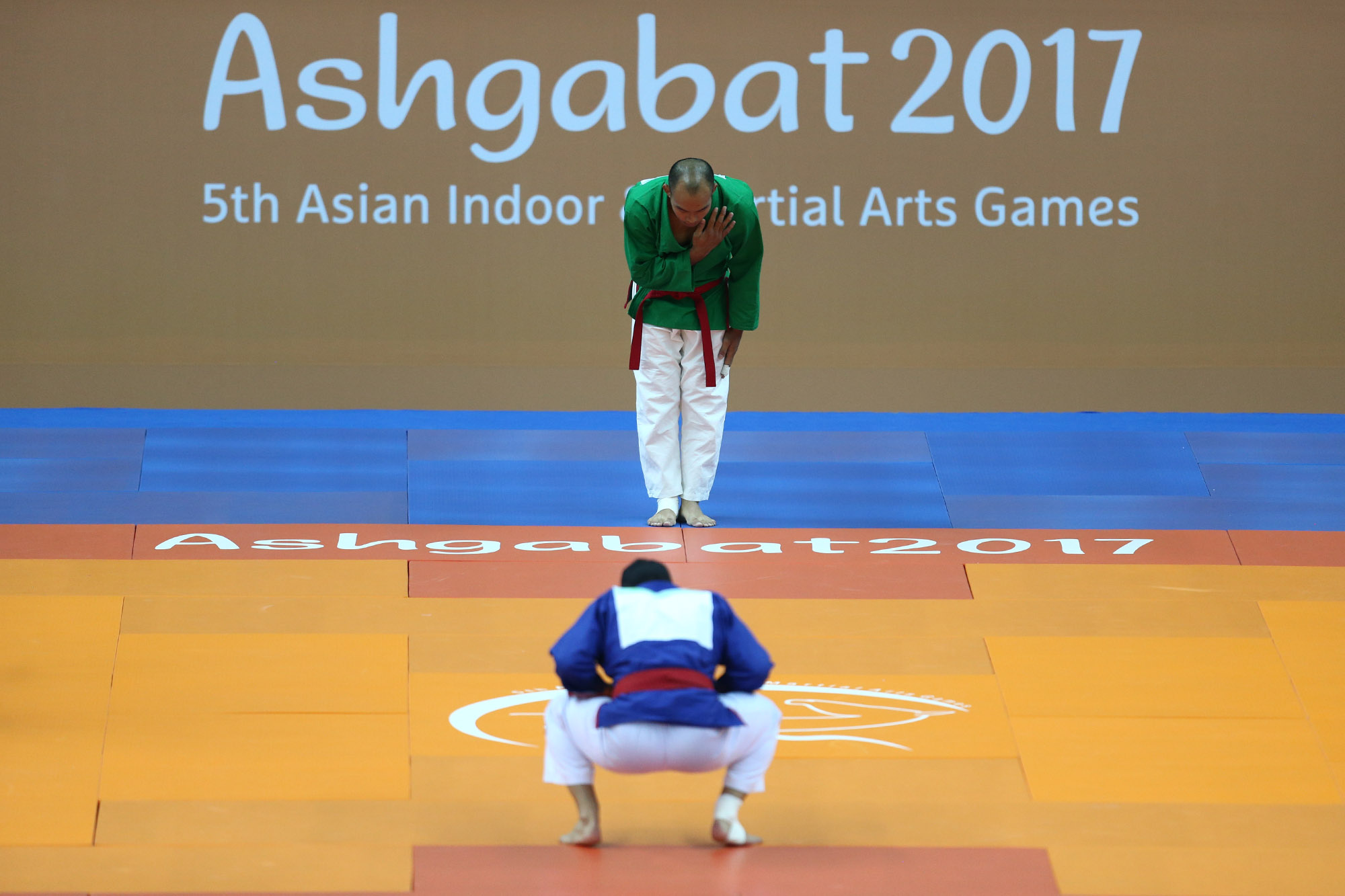 در وزن ۱۰۰+ کیلوگرم کامران رستمی ابتدا عبدالرحمانوف از تاجیکستان را بهدلیل غیبت حریف از پیشرو برداشت. او در نیمه نهایی نیز مقابل عمرخیل از افغانستان قرار میگیرد.