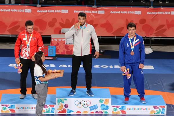 محمد نصرتی نماینده وزن ۹۲ کیلوگرم کشتی فرنگی کشورمان که با شکست حریفانی از برزیل و روسیه به دیدار فینال سومین دوره بازیهای المپیک جوانان راه یافته بود دقایقی پیش با نتیجه ۳بر ۱ عثمان آیدین از ترکیه را نیز مغلوب کرد و به مدال طلای این دوره از بازیها دست یافت.