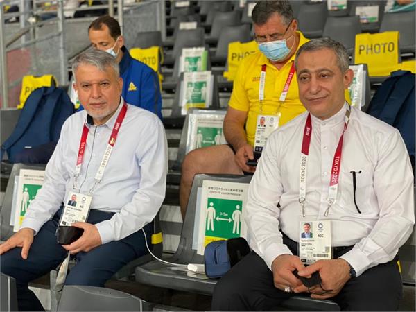 دکتر سید رضا صالحی امیری رئیس کمیته ملی المپیک و دکتر کیکاوس سعیدی دبیر کل کمیته با حضور در سالن مسابقات کشتی از نزدیک شاهد رقابت کشتی گیران کشورمان با حریفان المپیکی خود می باشند.