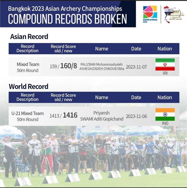 مسئولان برگزاری مسابقات، روز گذشته رکوردهای جدید این رشته در مسابقات آسیایی را اعلام کردند و تیم میکس کامپوند ایران به عنوان رکورددار جدید این مسابقات معرفی شد.
