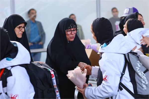 در مراسم استقبال که خانواده های قهرمانان نیز حضور داشتند مهین فرهادی زاد نائب رئیس کمیته ملی المپیک ضمن عرض تبریک این موفقیت ارزشمند برای ورزش کشورمان در سالجاری آرزوی موفقیت کرد و عنوان داشت بدون تردید جامعه ورزش بانوان کشور عزیزمان همچون سالهای گذشته با موفقیت و افتخار آفرینهای خود در سال جاری دل مردم عزیزمان راشاد خواهند کرد.