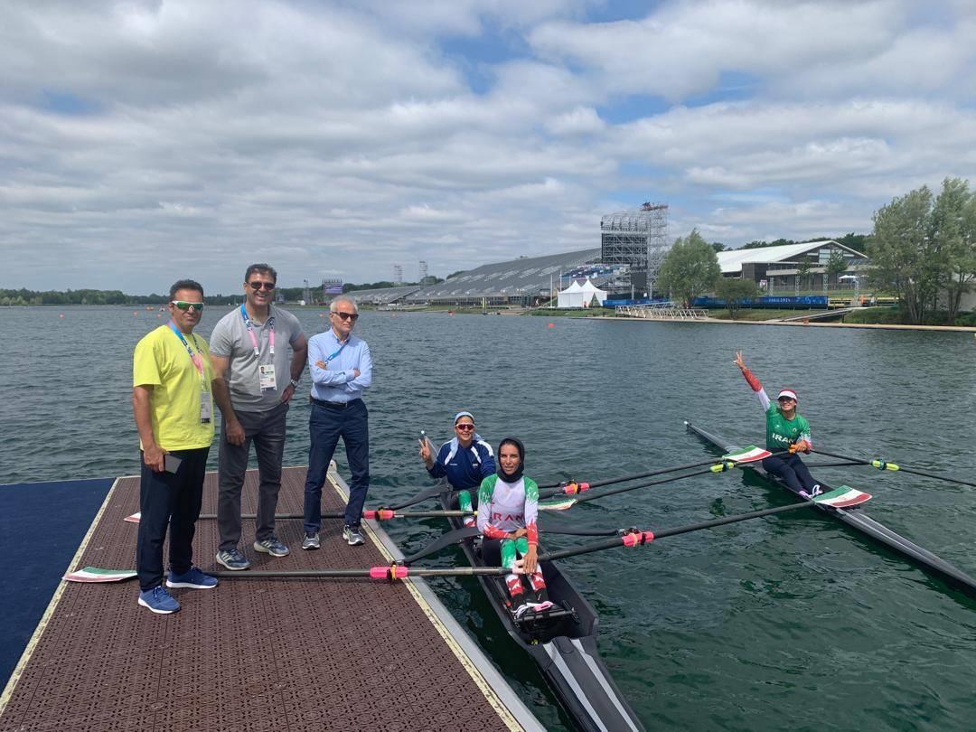 به گزارش روابط عمومی کمیته ملی المپیک؛دکتر نصراله سجادی مشاور رئیس کمیته ملی المپیک و عضو کادر سرپرسی کاروان اعزامی کشورمان در المپیک پاریس، از تمرینات تیم قایقرانی روئینگ پیش از آغاز مسابقات دیدن کرد . تیم ملی قایقرانی روئینگ ایران از ۳۱ تیر تمرینات خود را پیش از آغاز مسابقات المپیک در استادیوم دریایی ورس سور مارنه در فاصله ۴۰ کیلومتری دهکده بازیها آغاز کرد.افشین فرزام سرمربی تیم ملی روئینگ،فاطمه مجلل، مهسا جاور و زینب نوروزی نمایندگان روئینگ کشورمان در این دوره از بازیهای المپیک می باشند.