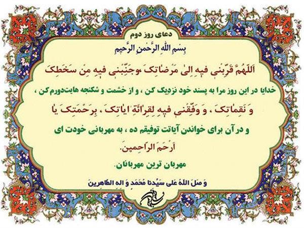 خدایا نزدیک کن مرا در این ماه به سوی خشنودیت و برکنارم دار در آن از خشم و انتقامت و توفیق ده مرا در آن برای خواندن آیات قرآن به رحمت خودت ای مهربانترین مهربانان. »