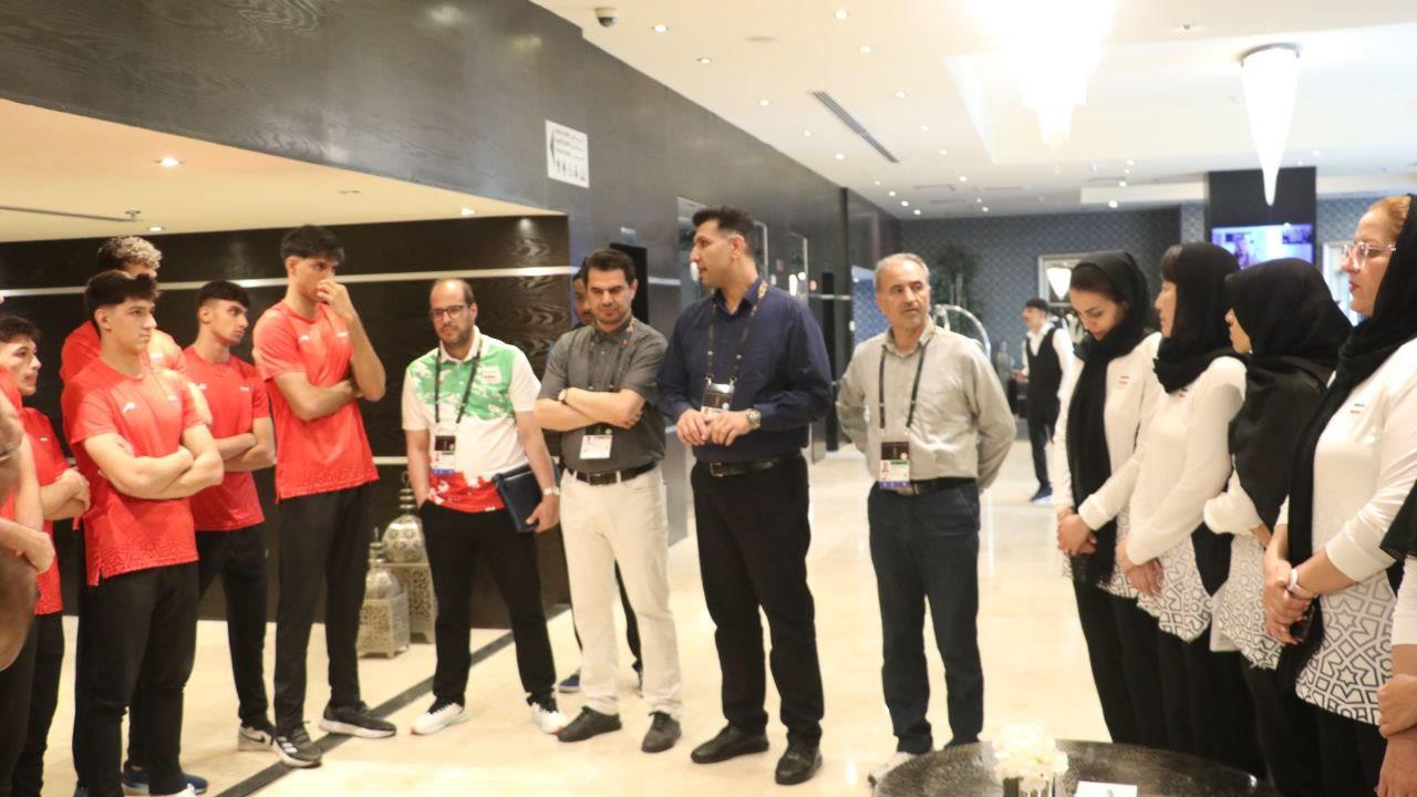 در ادامه دکتر حمید عزیزی عضو کادر سرپرستی نیز برای تیم های ورزشی کشورمان در این رقابتها آرزوی موفقیت کرد و عنوان داشت: هدف از حضور در هتل محل اقامت ورزشکاران اینست تا ببینیم اگر دغدغه ای عزیزان دارند در صدد رفع آنها بر آییم و تمام توانمان را بر اساس شرایط موجود جهت رفاه شما عزیزان فراهم آوریم.