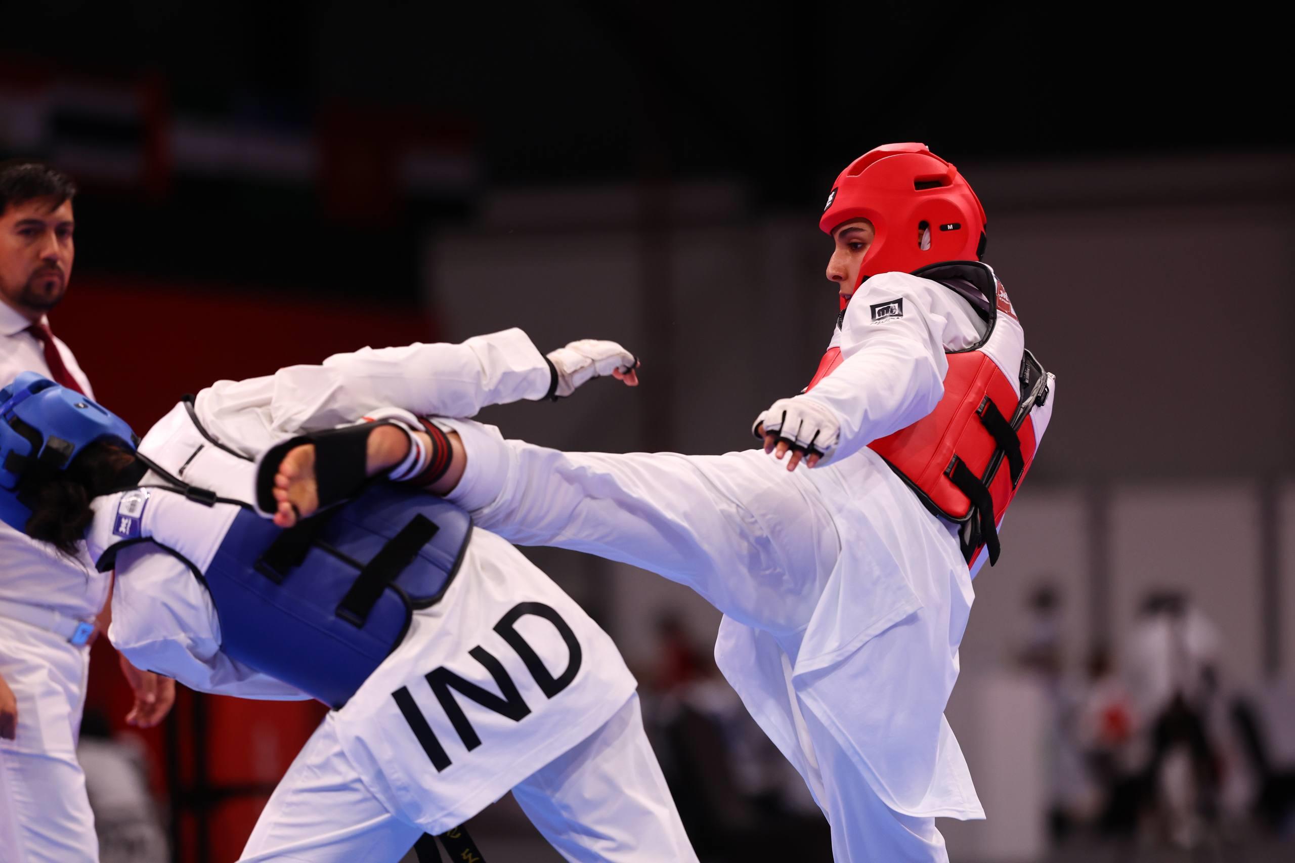 نماینده وزن ۶۳+ کیلوگرم دختران در مرحله یکچهارم نهایی رودرروی پریشا سانتوش شتی از هند قرار گرفت و در دو راند پیاپی و با امتیازات عالی ۱۳ بر صفر و ۱۲ بر صفر به برتری رسید تا راهی نیمهنهایی شود.