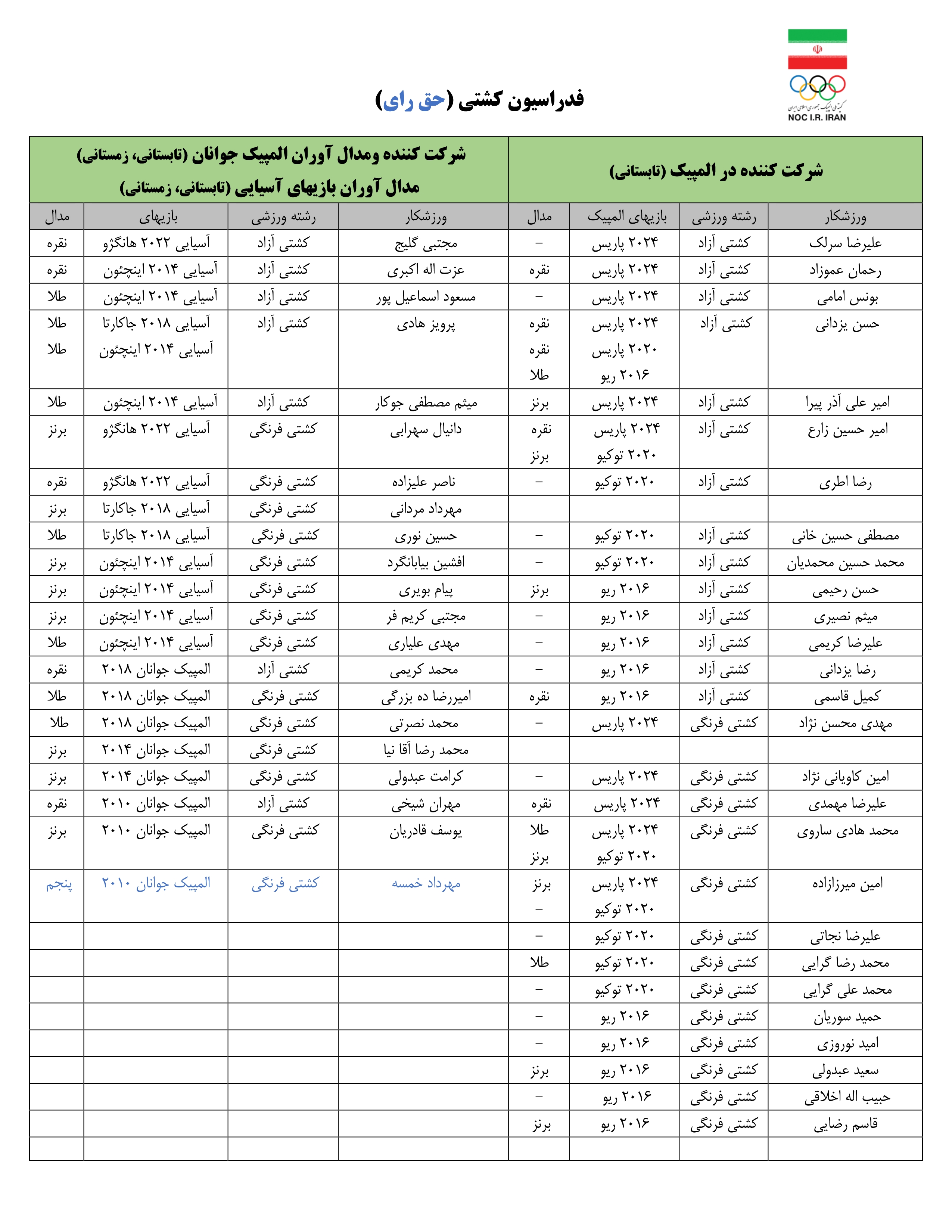 اسامی ورزشکاران واجد شرایط برای عضویت یا کاندیداتوری