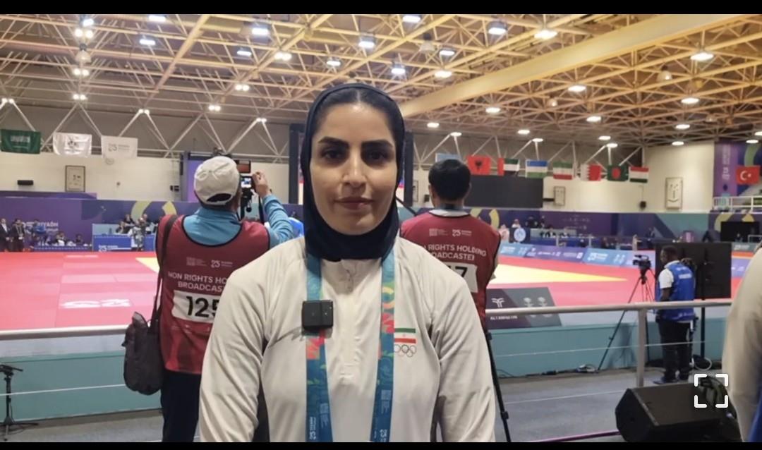 سرمربی تیم ملی جودو بانوان پس از کسب نخستین مدال کاروان ایران در مسابقات جهانی، این موفقیت را به مردم ایران و بهویژه بانوان ورزشکار تقدیم کرد و از حمایت مسئولان فدراسیون قدردانی کرد.