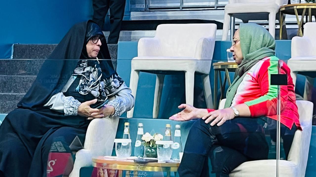 بازیهای کشورهای اسلامی ریاض:حضور دکتر مهین فرهادی زاد نایب رییس کمیته ملی المپیک در سالن برگزاری مسابقات والیبال بانوان ایران مقابل تاجیکستان در دیدار رده بندی.