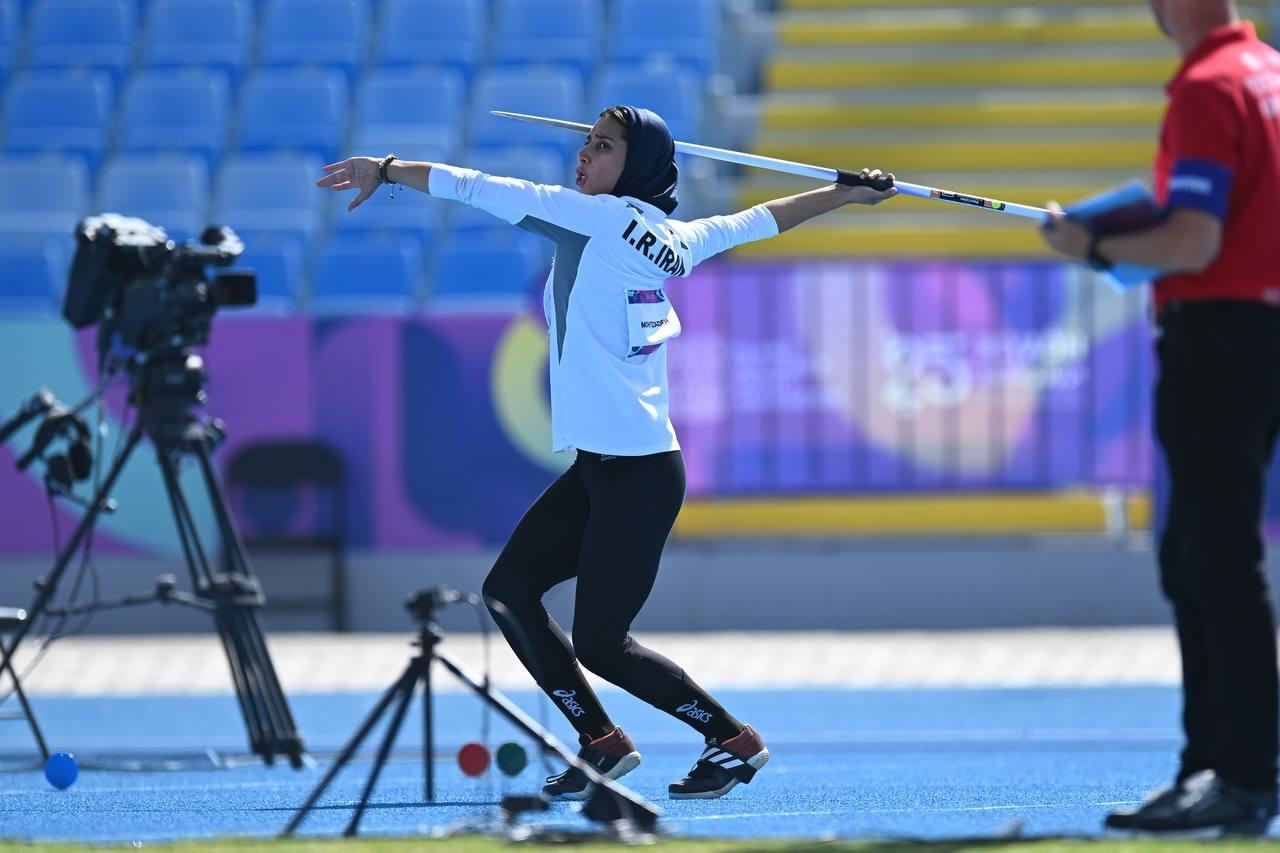 در ماده پرتاب نیزه فاطمه محیطی زاده با سه پرتاب که یکی از آنها خطا شد ۵۵۸ امتیاز کسب کرد و در مجموع امتیازهای شش ماده از هفتگانه او به ۴۷۶۶ رسید.او در پرش طول هم ۸۸۷ امتیاز کسب کرده بود. همچنین صبا خراسانی در پرتاب نیزه با سه پرتاب ۵۲۶ امتیاز کسب کرد.در پرش طول نیز ۷۲۰ امتیاز گرفته بود و در نهایت در پایان ۶ ماده از هفتگانه به امتیاز ۴۴۲۴ رسید.