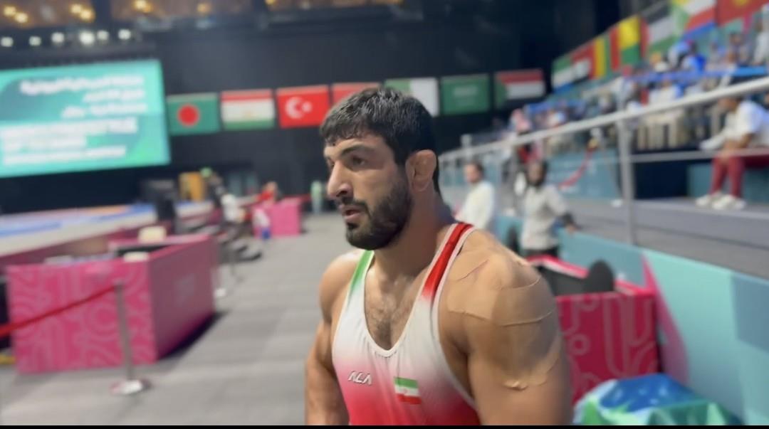 کشتی گیر قهرمان کشورمان گفت:دوست دارم این مدال را به مردم ایران تقدیم کنم.