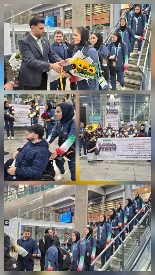 در ادامه بازگشت تیم های ملی اعزامی به ششمین دوره بازیهای همبستگی کشورهای اسلامی تیم های ملی پارا وزنه برداری،هندبال بانوان،جوجیتسو و گروه پزشکی و خبری عصر امروز در بدو ورود به فرودگاه بین المللی امام خمینی (ره) مورد استقبال تشریفات ومسئولان کمیته ملی المپیک قرار گرفتند.