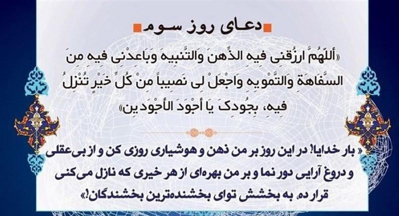 خدایا در این روز مرا هوش و بیداری نصیب فرما و از سفاهت و جهالت و کار باطل دور گردان و از هر خیری که در این روز نازل میفرمایی مرا نصیب بخش به حق جود و کرمتایای بخشندهترین بخشندگان.